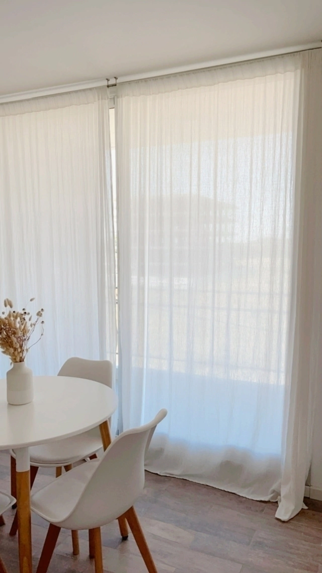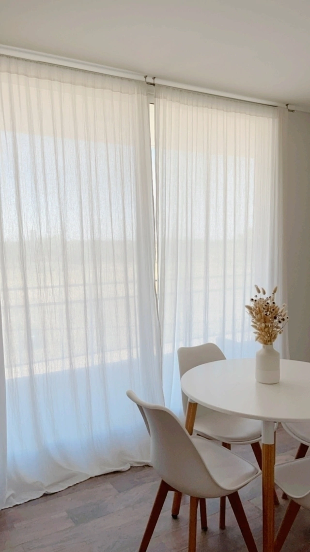 En deco se recomienda que el largo llegue hasta el piso, sugerimos para una buena caída que caigan hasta el suelo.