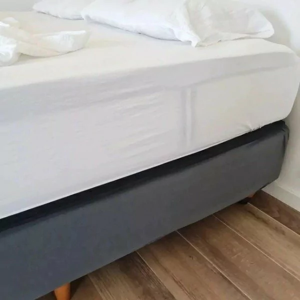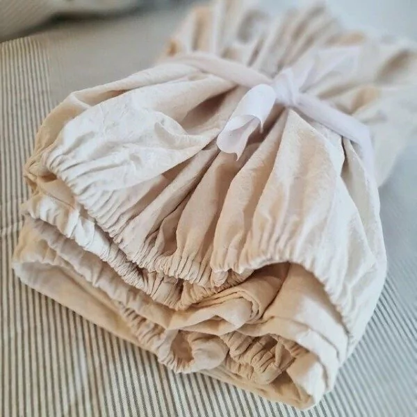 Cubresommier en tussor de algodón con frunces superiores e inferiores en todo el perímetro.