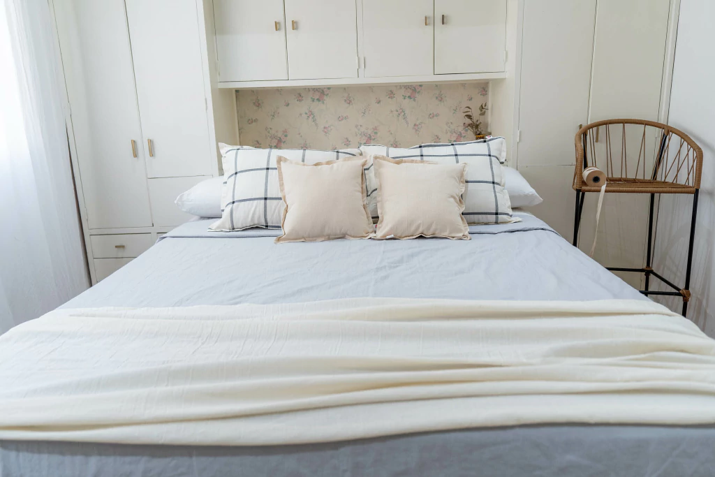 Funda de almohada 70x50 cuadriculado de tussor con base color natural y cuadros negros, con solapa.